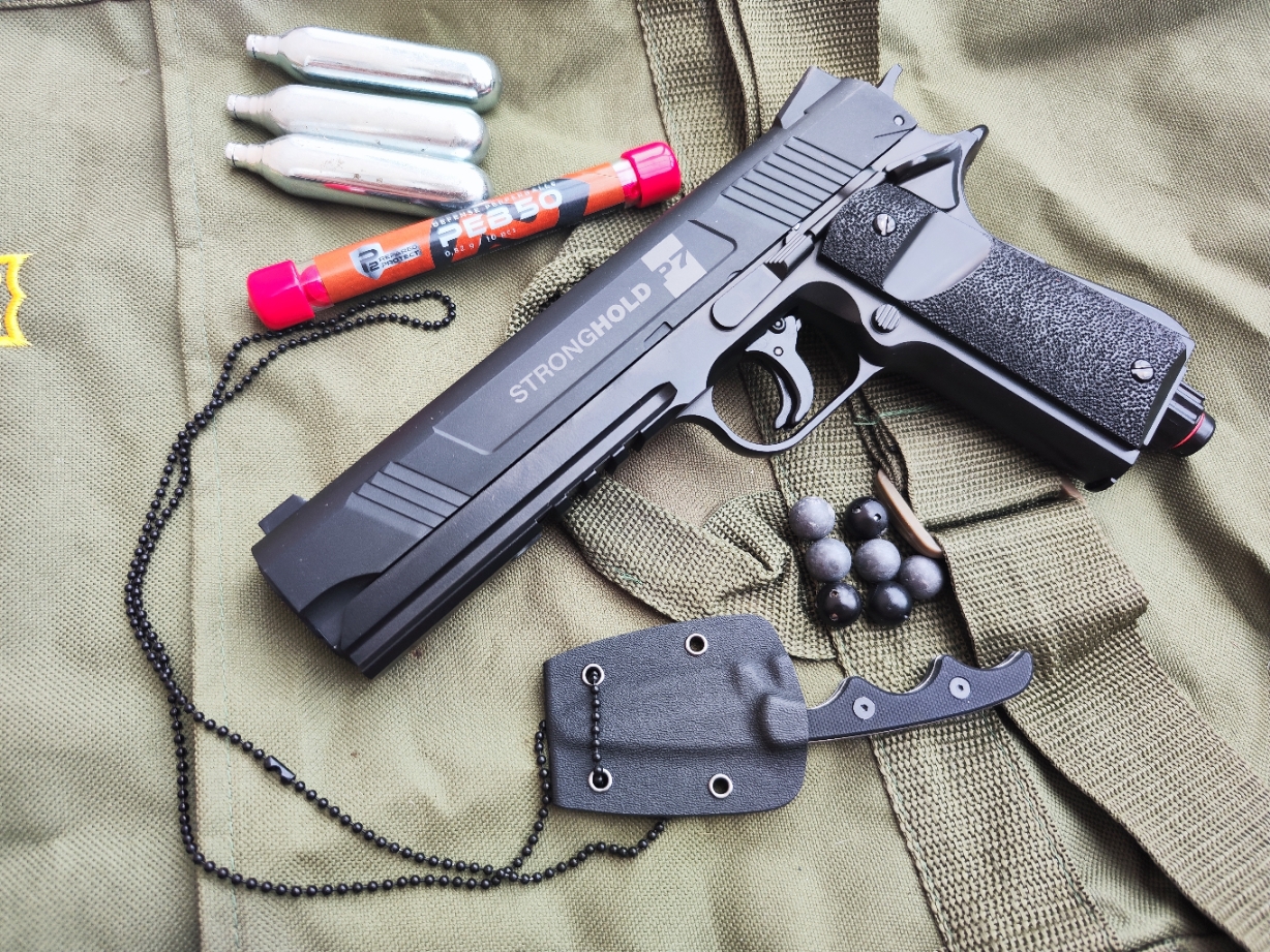 Egy újabb .50-es markert tesztelünk ebben a videóban, mely a hasonló Glock, SIG, Beretta utánérzések után nyilvánvalóan egy 6″-es M1911-jellegű eszköz. Ezt is Távol-Keleten, konkrétan és a fegyveren jelölten Tajvan szigetén gyártják (Crosman Stronghold P7 néven is forgalmazzák). Csöve alatt levő csőtárjába 7 db .50-es kaliberű festék-, paprika-, por-, vagy traumatikus GÖMBlövedéket lehet tárazni, festéklövedékkel a gyárilag megadott torkolati energiája 11 joule.